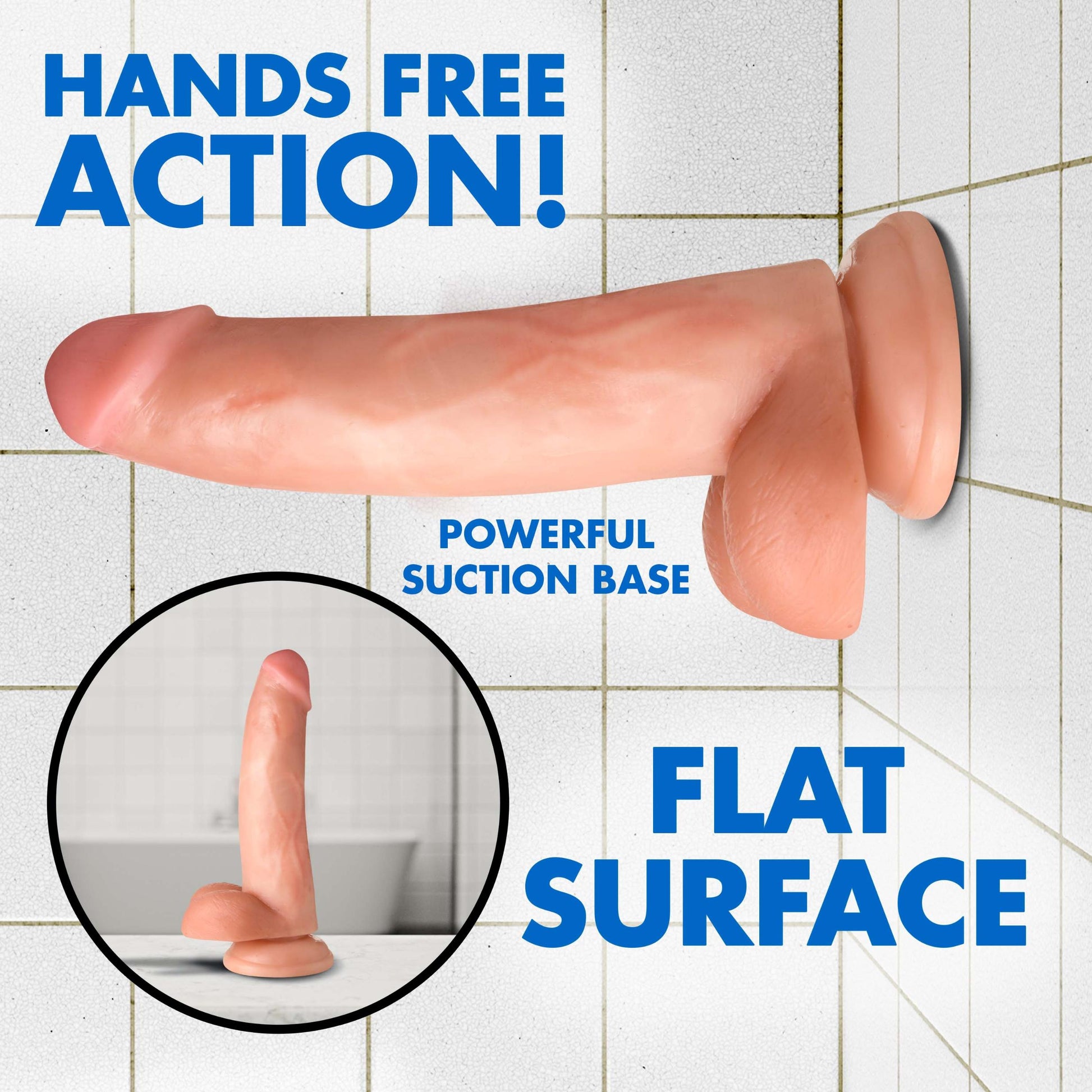 This mighty 8 inch cock has a lifelike look, from the realistic head, down the subtly curved shaft, to the round firm balls. Made from phthalate-and-latex free enhanced PVC. The material is firm with a slight amount of give, for a semi-pliable feel that makes it easy to slide into place. The strong suction cup base will adhere to any flat, smooth surface which leaves your hands free for other pleasures. Durable, easy to maintain, and easy to clean, enjoy this simple but significant rock hard cock!